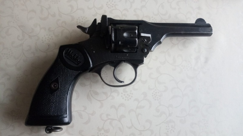 Biete einen Webley & Scott Mark IV Revolver, britische Waffe aus dem Zweiten Weltkrieg, als Umbau zur freien Waffe im Kaliber 9mmR Knall. Ich habe den Revolver Anfang der 1990er im Waffenhandel gekauft und nie geschossen. Baujahr lt. Waffennummer 1944, War Finish - Variante in grober Brünierung. Es ist das Modell ohne Gewinde für einen Abschussbecher, daher ist auch an der Mündung nicht zu erkennen, dass es eine Schreckschusswaffe ist. Einwandfreie Funktion. Letzte Gelegenheit, solche Umbauten wird es nie wieder geben