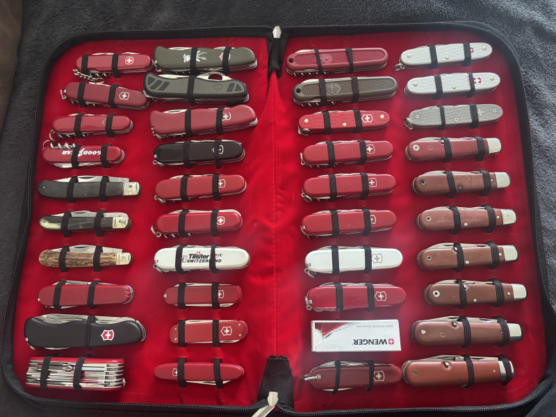 Verkaufe hier meine Victorinox Sammlung bestehend aus 40 Messern, teils leicht gebraucht, teils neuwertig in ovp. Dabei sind Raritäten wie zb. Ein mechanic in schwarz, ein Pioneer von werktrieb und gut erhaltene 51er und 08er Modellen. Bei Fragen gerne email schreiben, ich beantworte so gut ich kann. Die Bauernmesser sind allerdings nicht von Victorinox, sondern von pius lang. Diese sind auch etwas beschliffen.