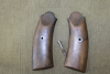 Verkaufe originale Holzgriffschalen mit Schraube für Leuchtpistole / Signalpistole Modell "Hebel", Kal. 4, deutsch, I. WK. Diese Leuchtpistole wurde von vielen Herstellern produziert, z. B. Anschütz, Funk, Greifelt, Kerner, Langenhan, Menz usw.