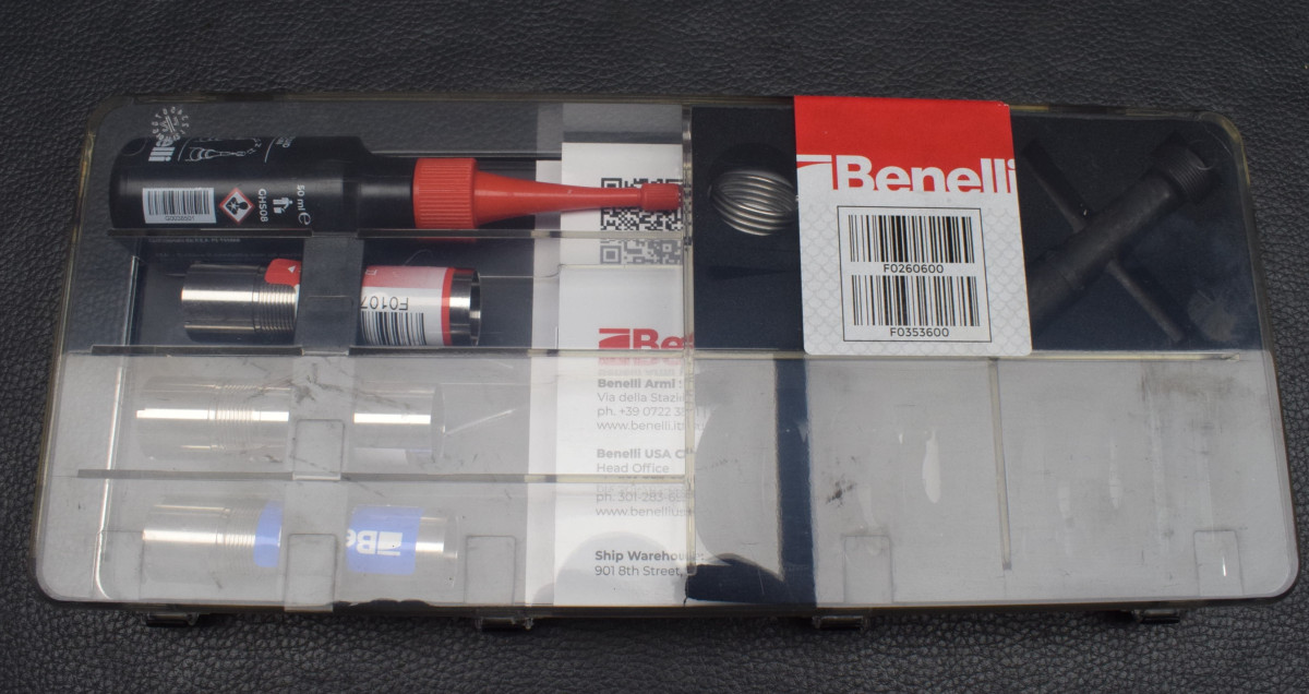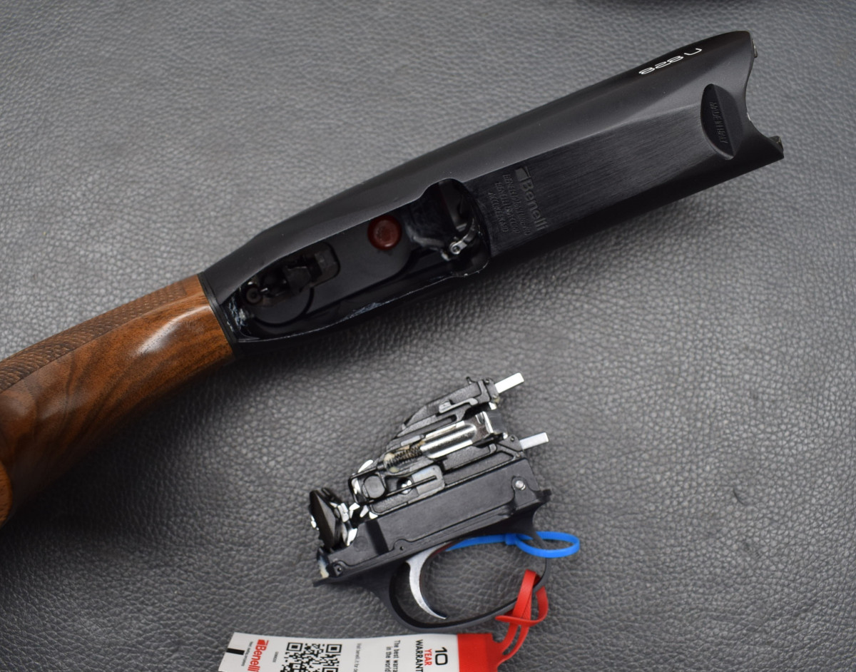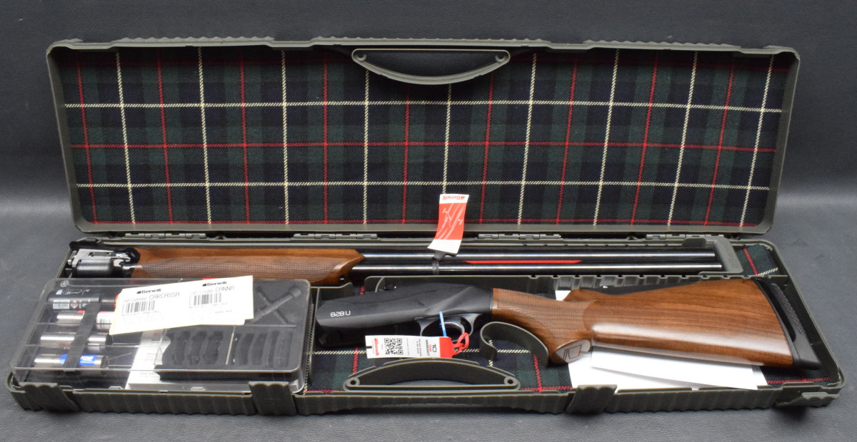 Die 828 U wird in einem Koffer aus Polymer geliefert, der dem Stil der Verpackungen der Benelli der letzten Generation entspricht. Die interne Auskleidung aus Tartan verleiht ihm eine unverwechselbare Eleganz. Die interne Struktur ist vielseitig und modular, der Abschnitt Läufe-Vorderschaft sowie jener Schaft-Bügel haben ausreichende Ausmaße und Zubehörteile, um das 828 U in jeder beliebigen individuell gestalteten Konfiguration aufzunehmen.