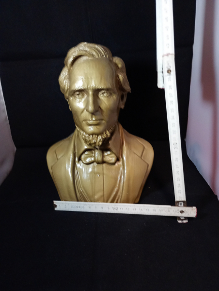 Gebrauchte Skulptur von Jefferson. Skulptur von Jefferson ist aus einen 3D Drucker und Gold/Messingfarbend Lackiert worden.