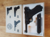 Kommt mit der Originalverpackung, einem Original P38 Holster (BW), in das die 08 perfekt hineinpasst, sowie einem zweiten 08 Magazin, wahrscheinlich von einer SSW.