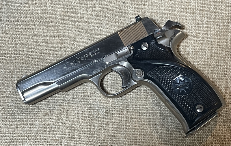 HA Pistole Star SS Kaliber 9mm Kurz / .380 Auto Eine der kleinsten und leichtesten .380er, Nickel / Chrom, eine PP wirkt klobiger, optisch an die 1911 erinnernd, nahezu identische Bedienung, nur viiiiiel kleiner. Zustand sehr gut, kaum geschossen, da ehemalige zerstörungsfreie 4mmM20, Re-Konversion. Siehe Bilder