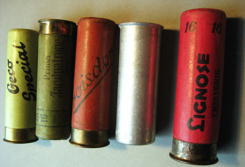 Angeboten werden fünf ältere Sammler Schrotpatronen im Kal. 16. Alle fünf sind noch in einem sammelwürdigem Zustand.