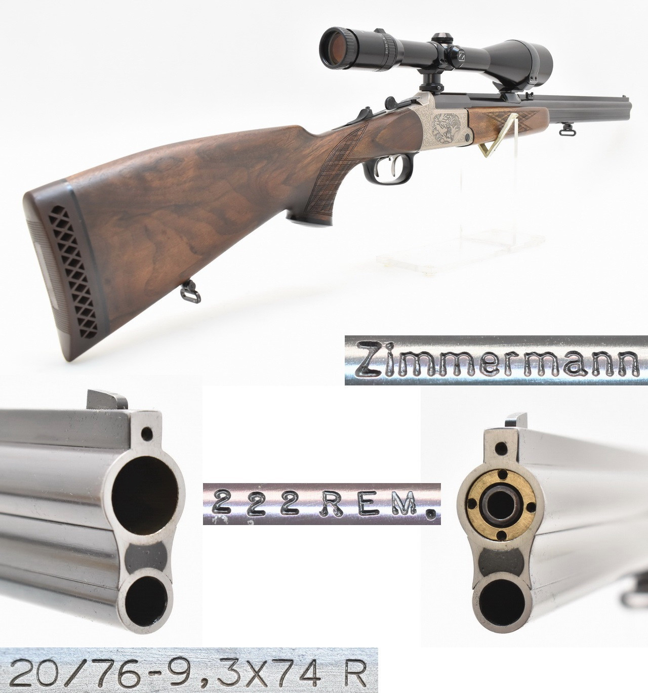 Bockbüchsflinte B L A S E R Modell ES 701 " Luxus " Kaliber 20/76 - 9,3x74 R mit Zimmermann VVV EL .222 Rem. und ZEISS ZF 3-12x56