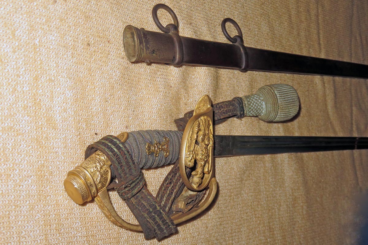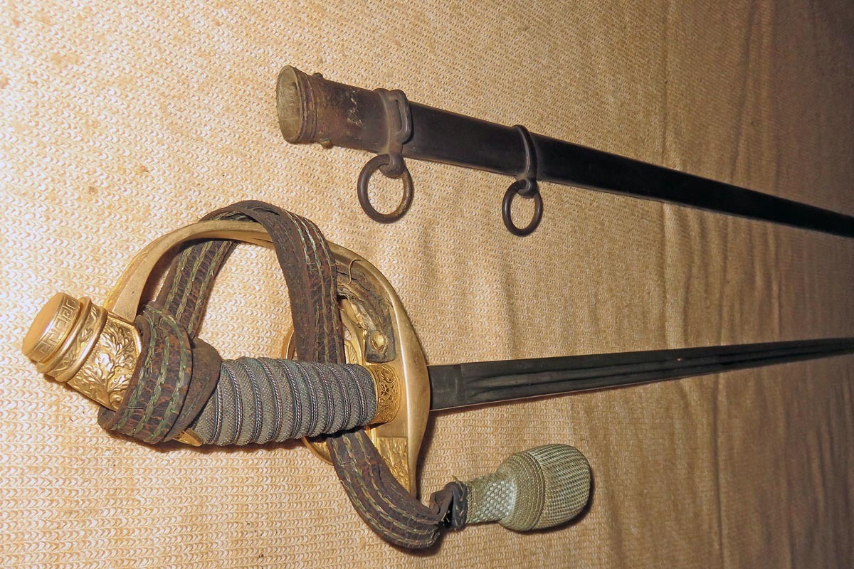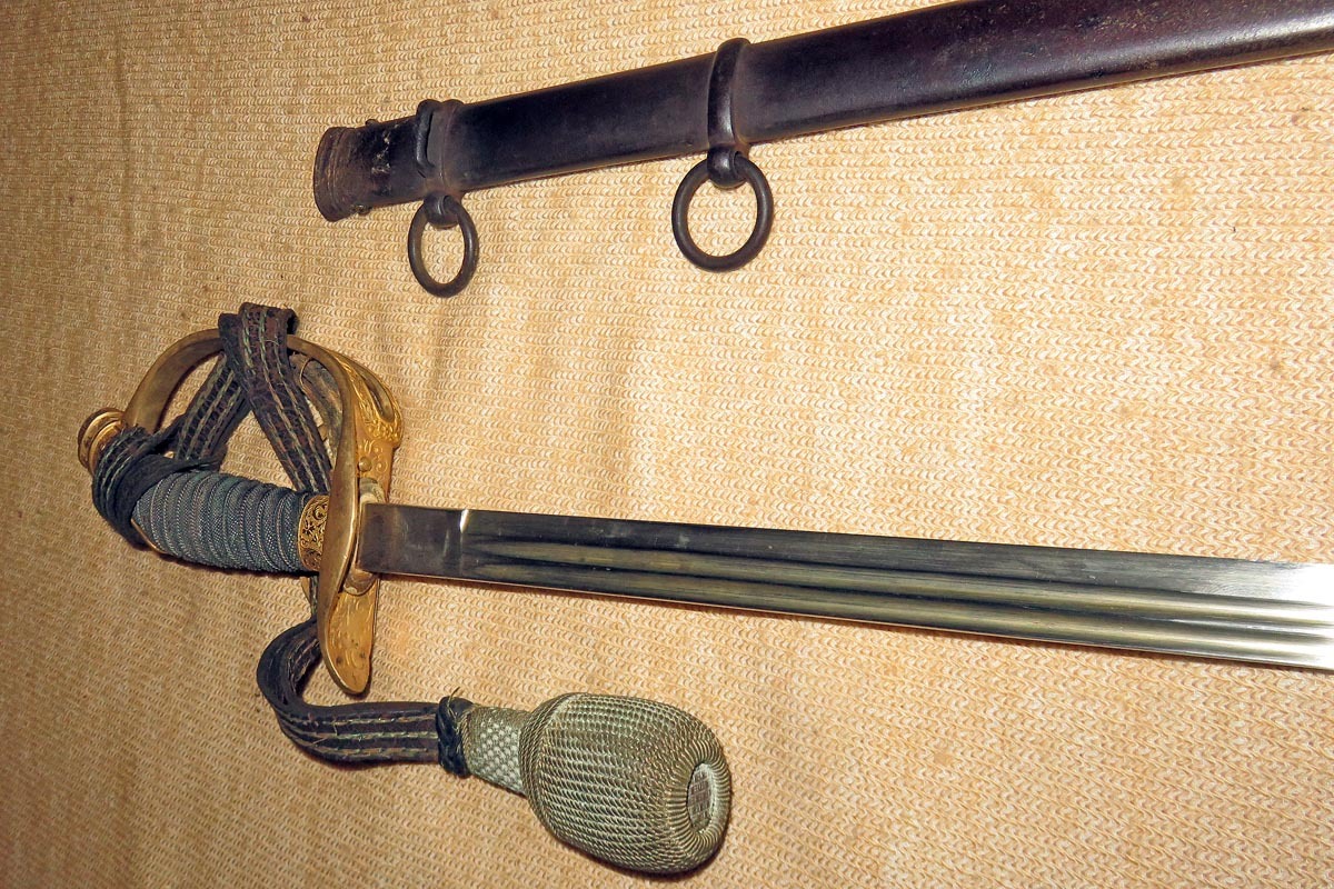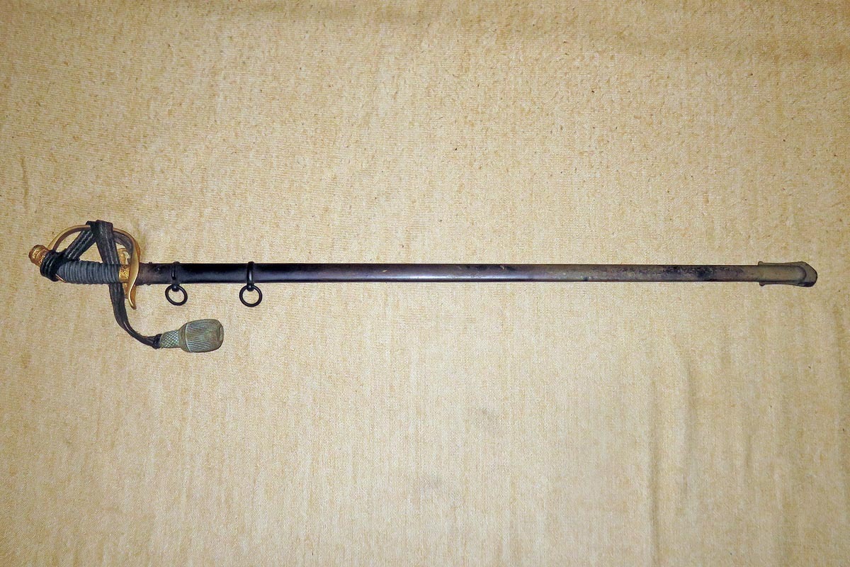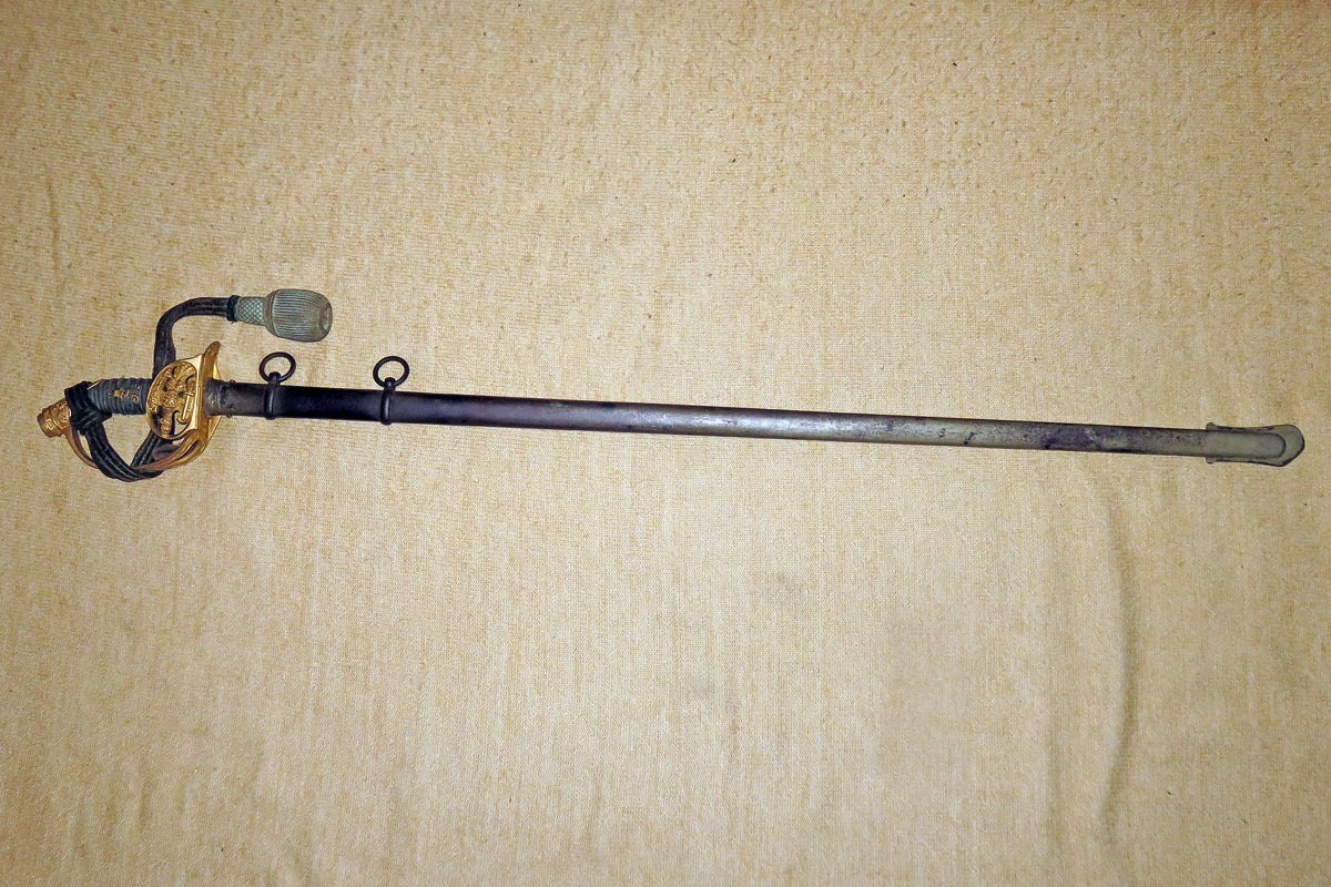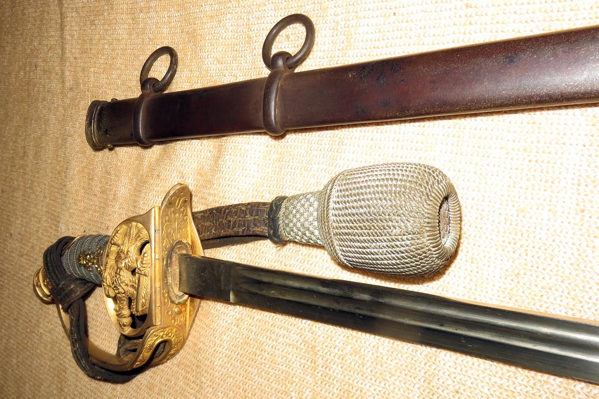 Der originale preußische IOD hat ein reich verziertes Gefäß mit Fingerschlaufe und Portepee, Griff mit Fischhautbesatz und Griffauflage „FR“ möglicherweise vom Schulterstück (Regiment Nr. 8).