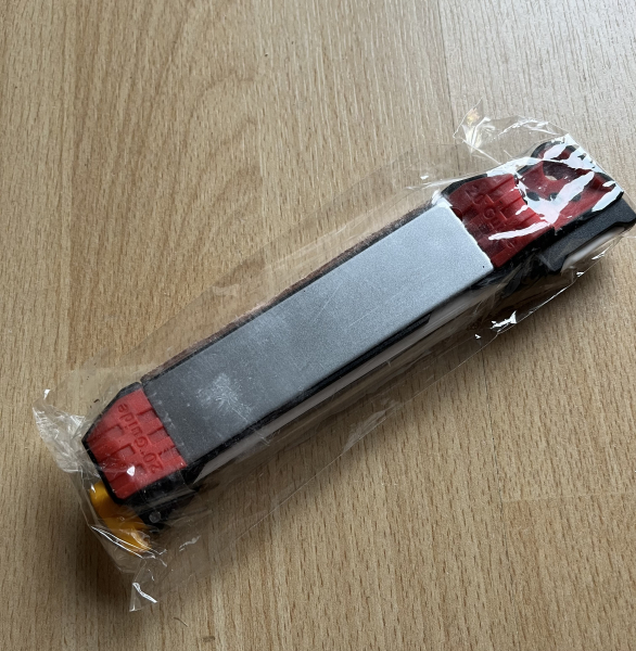 Biete ein unbenutztes, tragbares Outdoor Schleifset an. Es hat zwei unterschiedliche Diamant Schleifflächen, einen drehbaren Keramik Rundstab und an der Seite ein Abziehleder. An jeder Fläche ist eine 20 grad Führhilfe.