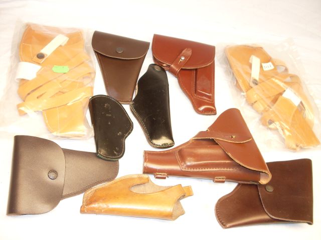 Sie bieten hier auf ein Konvolut von 10 Stück verschiedenen Holstern, dabei 2x Schulterholster in OVP für Colt Frontier Kal. 22, Beretta Mod. 34, Walther PPK, Makarov, GDH Holster, S&W Revolver 7,5 cm Lauf , 2x Walther TPH,Tokarev Polen. Gemischter Zustand von neuwertig bis leicht getragen. Zustand gemäß Fotos. Details und Fragen bitte vor Ablauf der Auktion klären. Farbabweichung durch Blitzlicht möglich. Privatverkauf kein Rückgaberecht und Gewährleistung. Der Bieter erklärt sich durch sein Gebot mit diesen Bedingungen einverstanden. Verkauf und Versand nur innerhalb von Deutschland mit Hermes Paket versichert.