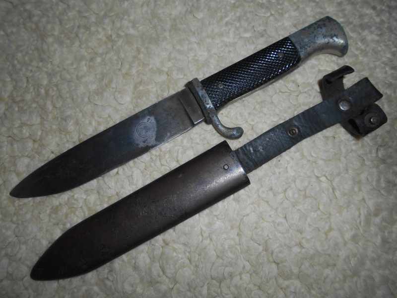 Originales Fahrtenmesser der HJ. Hersteller gestempelt RZM und M7/13. Variante ohne Devise. Stoßleder vorhanden, Griffschalen sind gut-keine Schäden. Klinge fürs Alter gut. 2 Mängel: Druckknopf fehlt, Raute/HK verlorengegangen. Ab sofort schreibt das neue EU-Gesetz vor, nachfolgenden Vermerk aufzuführen: "Ich verkaufe bei meinen Verkäufen ausschließlich Gebrauchtware, sofern nicht anders beschrieben. Diese Artikel sind aus meinem Privatbesitz und ich verfolge mit meinen Verkäufen keinerlei gewerbliche Zwecke. Eine Rechnung gibt es hierfür nicht. Da mittlerweile auch Privatverkäufer ein Jahr Gewähr leisten müssen, wenn sie das nicht ausschließen, erkläre ich hiermit ausdrücklich, dass ich für meine privat verkauften Artikel keine Gewährleistung und keine Rücknahme übernehme. Mit dem Kauf erklären Sie sich ausdrücklich damit einverstanden, auf die Ihnen nach neuem EU-Recht gesetzlich zustehende Gewährleistung/Garantie bei Gebrauchtwaren völlig zu verzichten!"