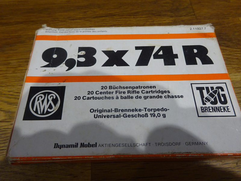 angebrochene Packung RWS Kal. 9,3x74 R mit noch 16 Schuss -19,0gr. TUG, siehe Foto und m ein egun