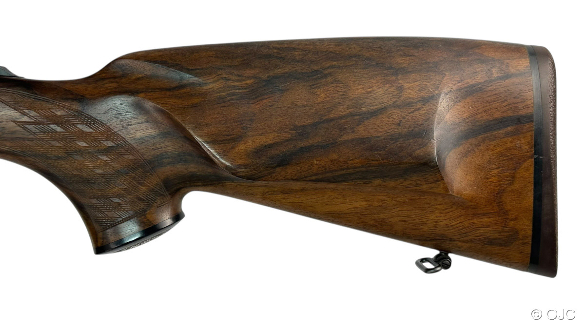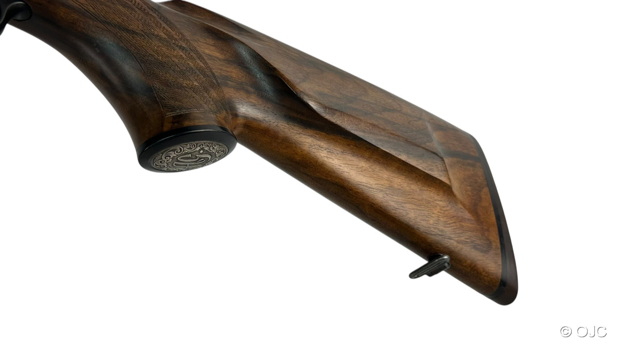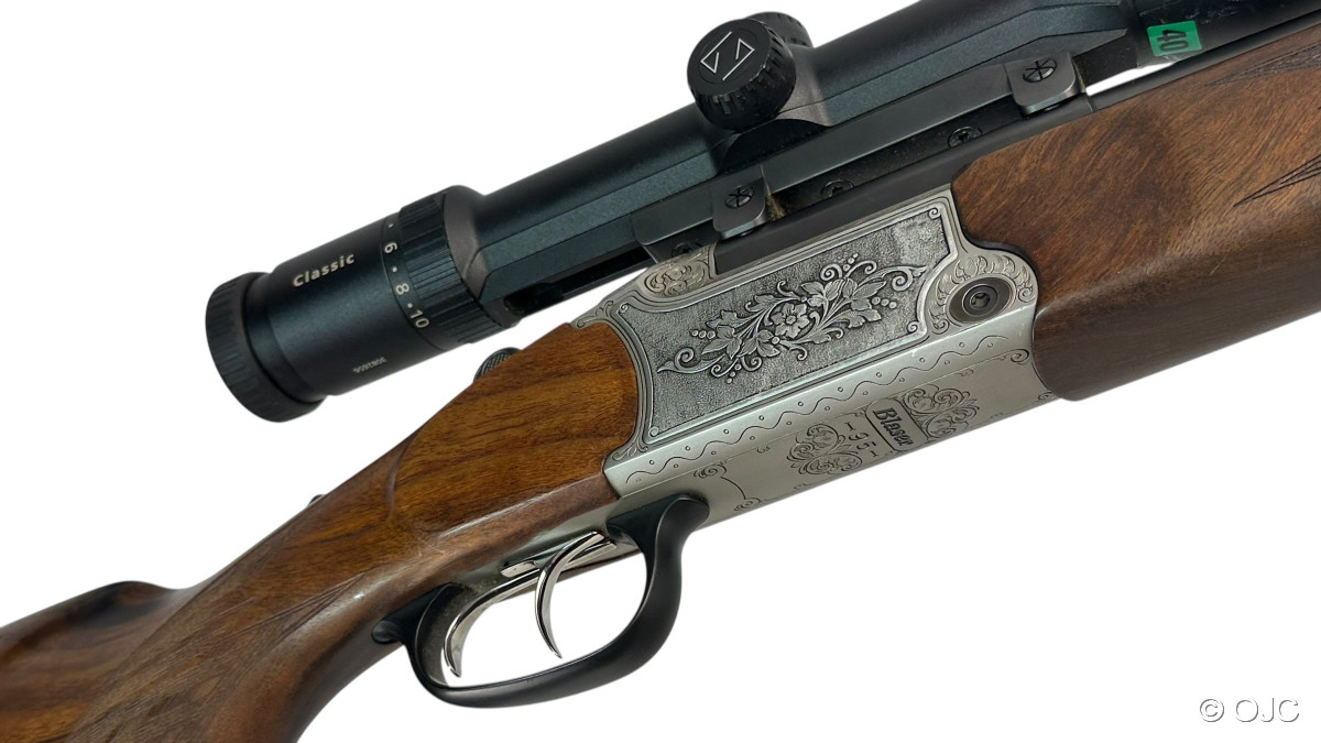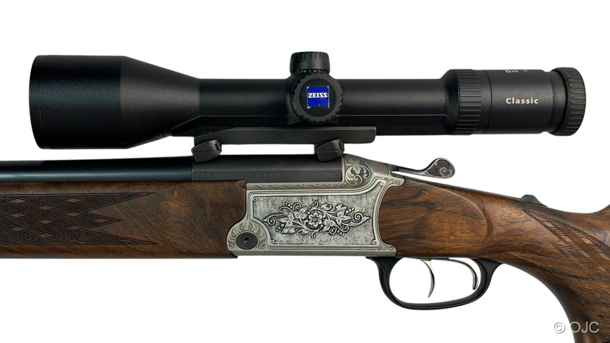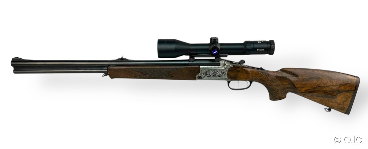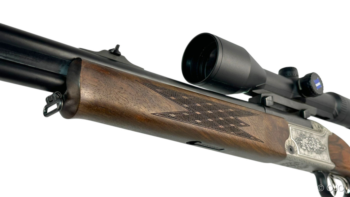 Diese Luxus Bockbüchsflinte aus dem Hause Blaser präsentiert sich mit edlen, gravierten Seitenplatten und einer Holzklasse 4. Das Einschlosssystem gewährleistet zusammen mit der Handspannung und den beiden Abzügen absolute Sicherheit und garantiert das präzise Antragen des Schusses. Dank des thermostabilen Büchsenlaufes im modernen Kaliber .308 Winchester können problemlos mehrere Schüsse ohne Präzisionseinbussen hintereinander geschossen werden.