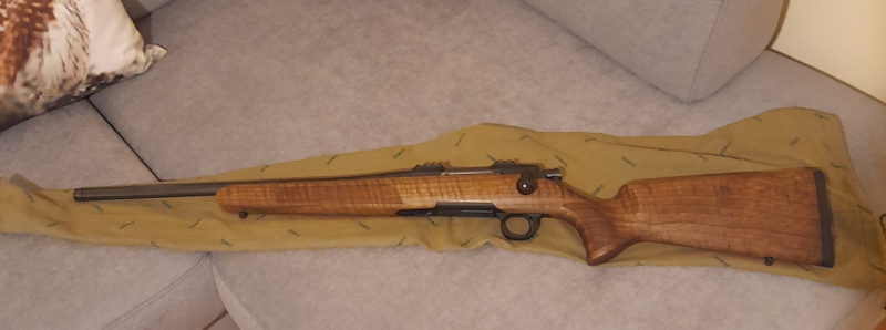 Nur 10 Schuß auf dem Schießstand abgegeben, sehr präzise, kleiner Streukreis. Die Waffe ist mir wegen des schönen Schaftes zu schade für den Wald und hat nur gut verpackt im Schrank gestanden.