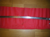 Sehr seltene Ausführung. Ich habe sollche Ausführungen noch nicht gesehen. Die Klinge ist beidseitig mit zwei Rillen. Metallgefäß. Rückseite des Griffs ist mir Floralmuster verschmuckt. Gesamtlänge 87cm, Klingenlänge 74cm. Im guten gebrauchten Zustand.