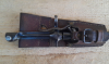Zustand siehe Bilder. Die Klinge ist gerade. Der Drücker ist gängig. Die Scheide ohne Dellen/ Beulen. Dazu eine Tragetasche („Frosch“) in der unten ganz schmalen Fertigungsvariante. Wie das Bajonett sind diese ebenfalls sehr selten! Zeitgenössischer Sattlerstempel und Jahrgang. Mit der falschen, breiten Tasche vom Standardbajonett ergänzt sieht das so richtig übel aus!