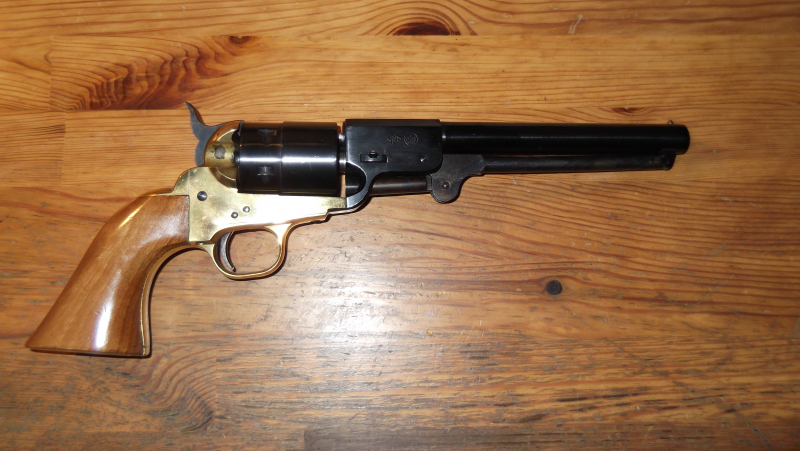 Sehr gut erhaltener Revolver, der vermutlich, aus scharfem Vorderlader-Revolver, umgebaut wurde. Bis auf das Messing-Griffstück aus Stahl gefertigt. Dank alter PTB ist er voll zerlegbar und hat eine scharfe Mündung (Gewinde ist kaum sichtbar). Leider nicht unbenutzt. Der Lauf ist, bis auf die punktgeschweißte Laufsperre im hinteren Bereich, völlig frei. Wirklich ein sehr schönes Stück aus Sammlerhand, das bei mir nur in der Vitrine gelegen hat. Zum Schluss das Übliche. Es handelt sich um einen gebrauchten Gegenstand, der privat verkauft wird. Es wird keine Garantie oder Gewährleistung gegeben, keine Haftung für Fehler in der Beschreibung und auch keine Rückgabe akzeptiert. Es ist ein Altersnachweis erforderlich.