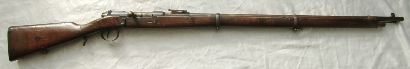 Die Waffe stand nicht nur im Arsenal – die „war dabei“. Deutliche Gebrauchsspuren daher vorhanden - eben dem einer militärisch geführten Waffe aus dieser Zeit entsprechend – das Gewehr ist immerhin schon über 130 Jahre alt! Brünierung stellenweise abgerieben, partiell fleckig/flugrostig. Lauf innen eher matt, Züge und Felder sind jedoch deutlich erkennbar. Schaft mit div. Kratzern und Druckstellen, am Vorderschaft re., ziemlich mittig, befindet sich ein ca. 15cm langer Haarriss, der wohl vor längerer Zeit mal verklebt wurde (siehe Foto) – hält bis jetzt, die Brandmarken beidseitig am Schaft sind sogar noch erkennbar, Schaftkappe rostig, die Garantie ist kürzlich abgelaufen. Gebrauchtwaffe.