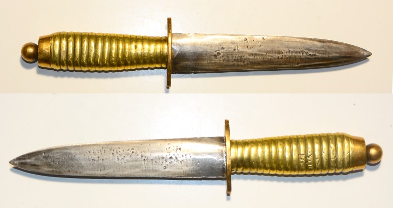 Französischer Behelfs-Grabendolch 1. Weltkrieg, hergestellt aus einem französischem Infanterieschwert 1853, Klingenlänge 14,6 cm, Gesamtlänge 25cm, gebrauchter Zustand