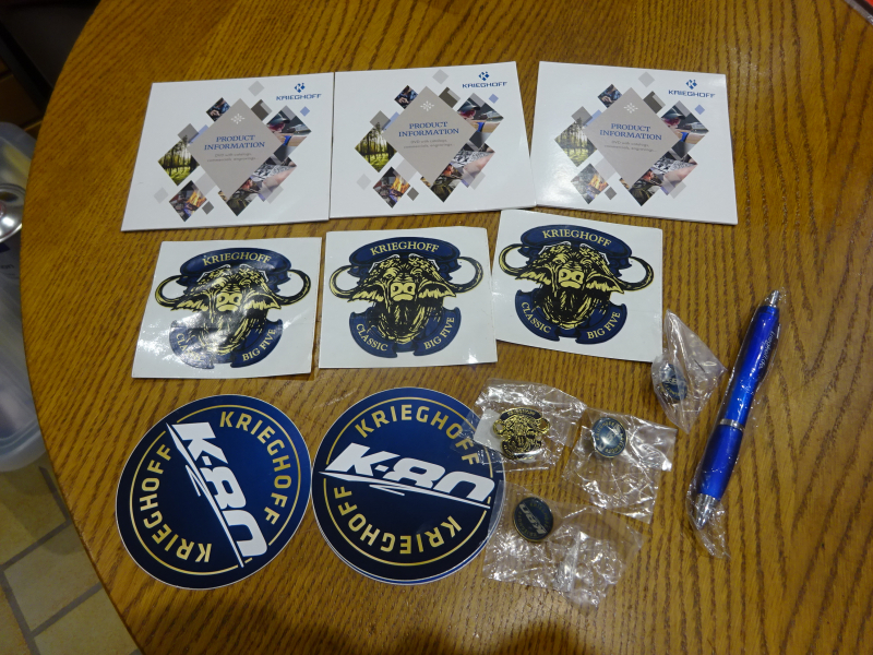 großes Werbemittelkonvolut der Fa. Krieghoff: 3 DVDs, diverse Aufkleber, diverse Abzeichen usw. ca. 15 Teile