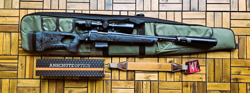 + Waffenkoffer, Stahlringmontage, Anschütz ZF, Hornady-Gewehrgurt, A-Tec Schalldämpfer H3