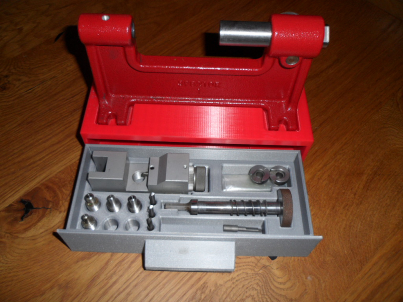 Aufbewahrungsbox für das Hornady Neck Turn Tool. Es ist mit einem 3D Drucker hergestellt. In dieser Box ist alles Zubehör sauber aufgeräumt. Die Farbe kann abweichen, liegt am Material.