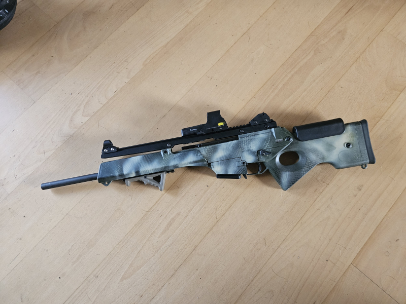 Die Büchse wurde von mir nur wenig genutzt und befindet sich nach meiner Einschätzung in einem guten Gesamtzustand. Sie wurde fachgerecht mit professionellem Waffenlack umlackiert. Dieser Lack kann bei Bedarf rückstandslos entfernt werden, da hierfür spezieller Remover erhältlich ist.