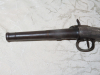 Leicht gravierter, perkussionierter Schlosskasten, an der Unterseite mit Abnahmen. Griff aus Weißmetall mit Blüten- und Rocaillegravuren