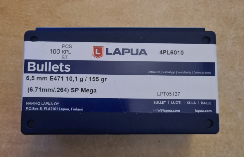 angeboten werden 100 Stück Lapua .264 Dia (6,5mm) Mega 155gr E471, SP Soft Point, neu in ungeöffneter OVP, alles aus einer Charge, Teilmantel halbrund Geschosse für die Jagd speziell für stärkeres Wild, Mantel und Kern sind verbunden, dadurch sehr hohes Restgewicht!