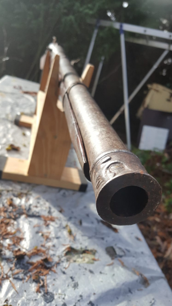 Kaliber ca. 23 mm glatter Lauf. Der Schaft ist angebrochen. Die Mechanik geht noch. Der Ständer ist nicht dabei