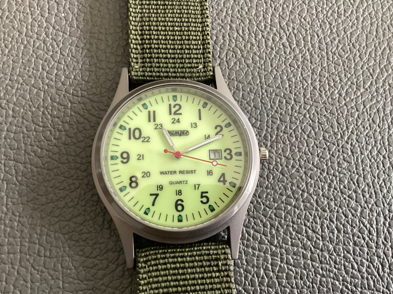 Das eine Foto zeigt die Uhr auf Armlänge in kompletter Dunkelheit!