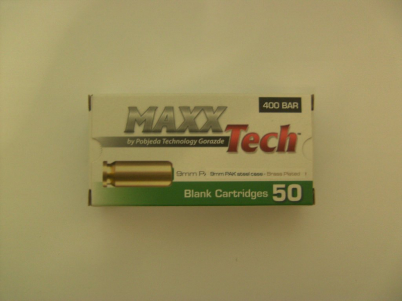 Zum Verkauf steht je 1 Packung Platzpatronen (50 Stück) im Kaliber 9mm PAK. Fabrikat MaxxTech. Qualitätsprodukt der Pobjeda Munitionsfabrik. Bitte beachten Sie auch meine anderen Auktionen. Bei Bestellung mehrerer Artikel fällt selbstverständlich nur einmal Porto an.