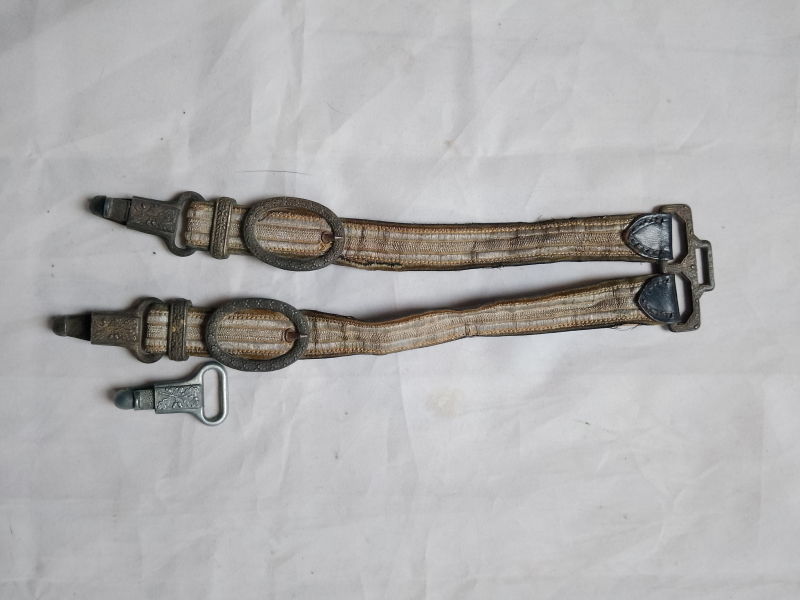Luxus Gehänge für den Heeres Offiziers deutsch oben mit dem Eichenlaubhänger und aufgesetzten Lederlaschen zu Verstärkung Halterung seltene Ausführung hundertprozentig originales Stück leider ist einer der Schieber Defekt ein passender Schieber wird mit dazu gegeben und gehört mit zur Auktion.