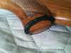Holzklasse 4 mit Ebenholzabschlüssen an Pistolengriff und Vorderschaft, Kammergriffkugel ebenfalls in Holz.