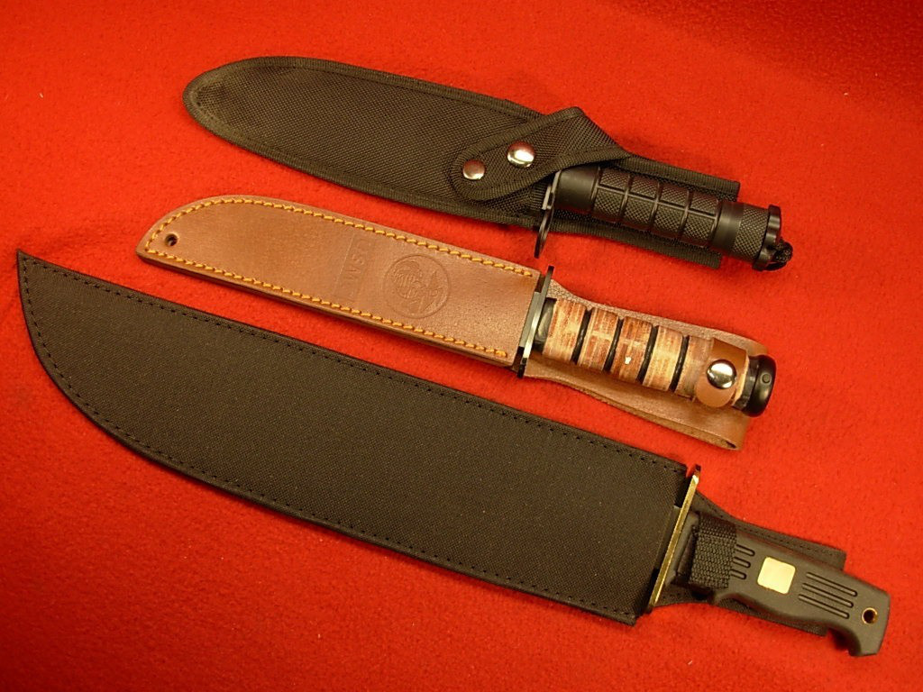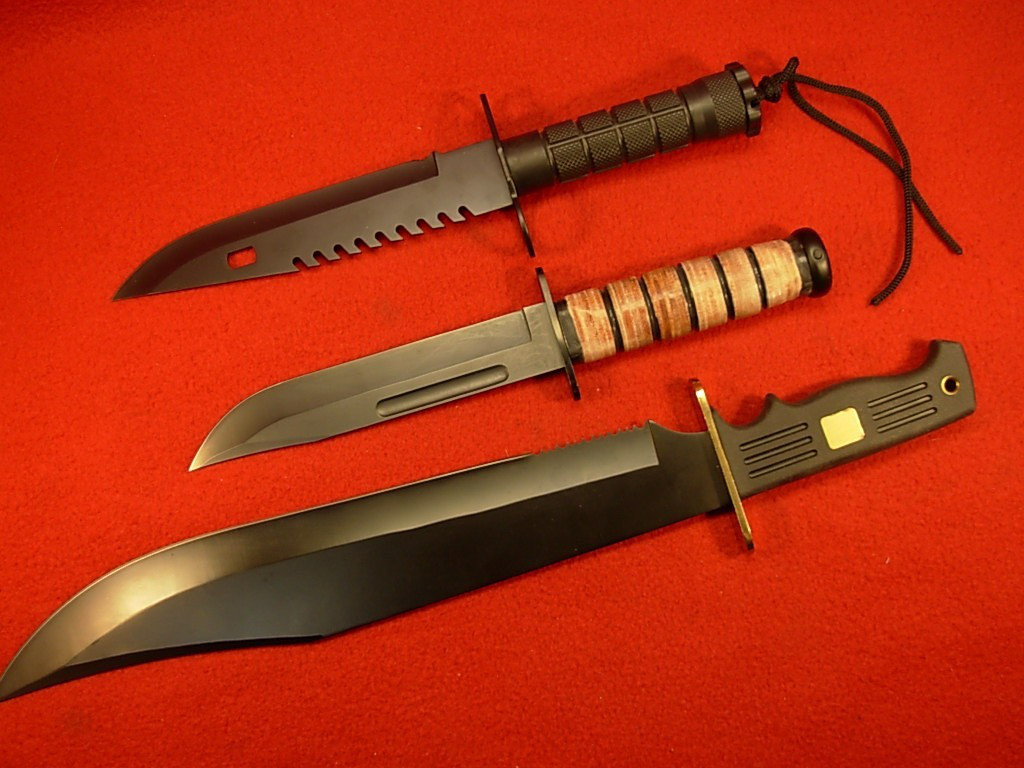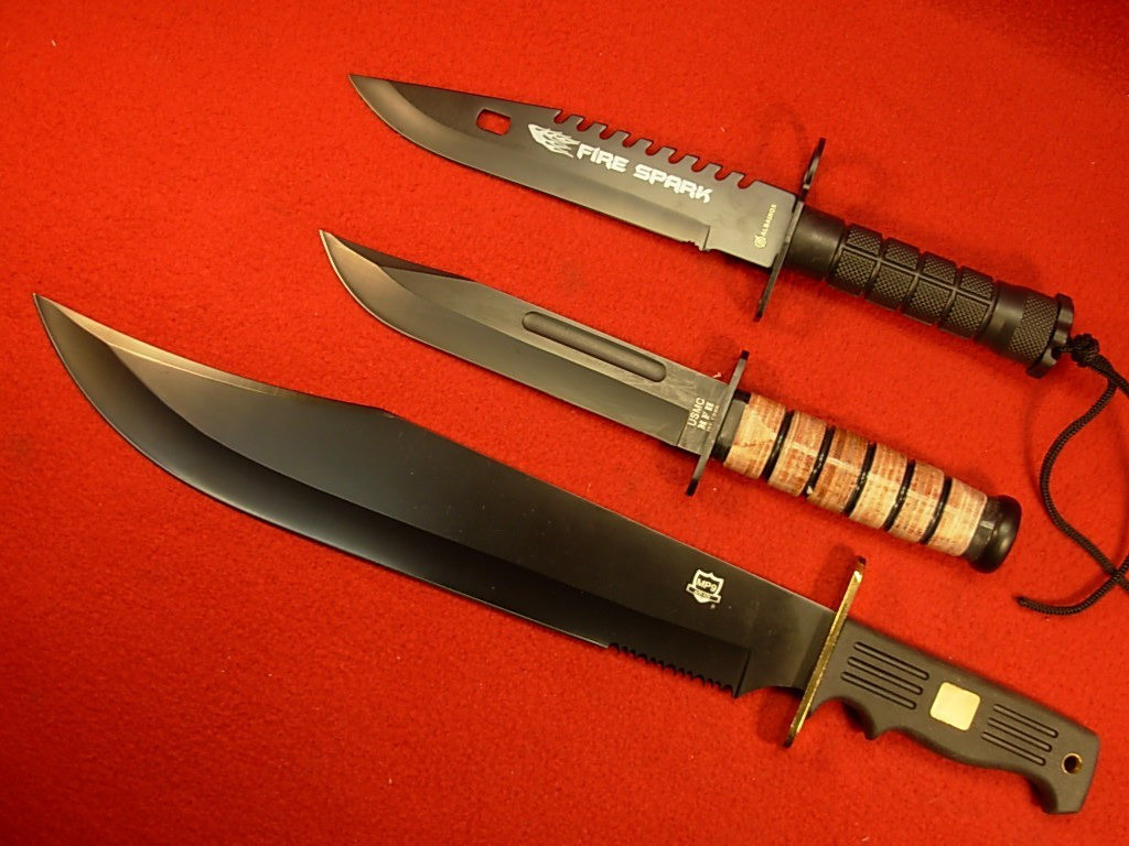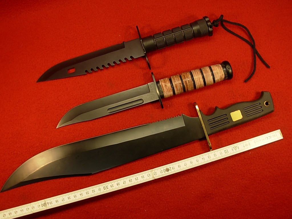 Drei Amerikanische Kampfmesser / Bowiemesser – ungebraucht – Sägerücken – – Altersnachweis erforderlich oder Zertifiziertes eGun-Mitglied -