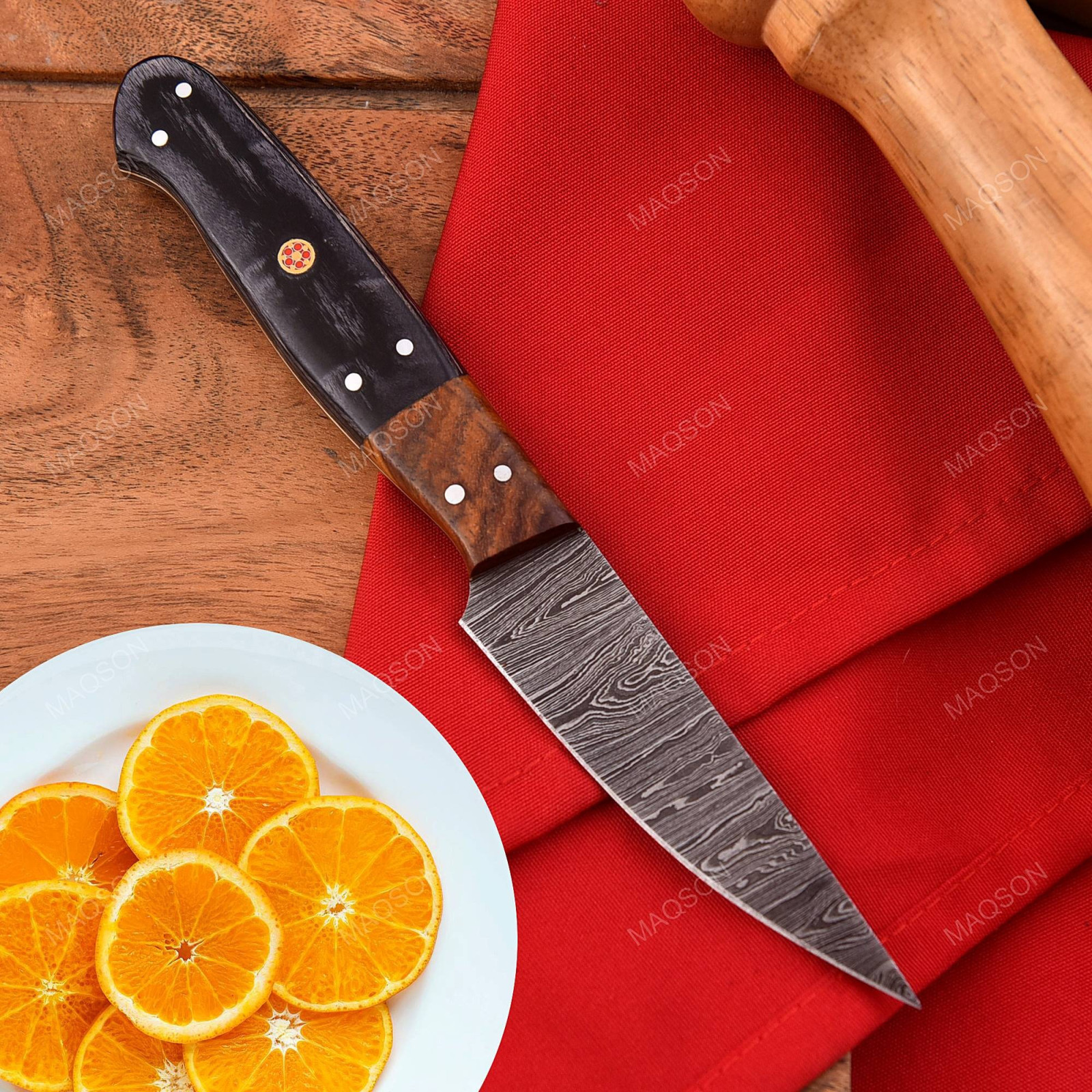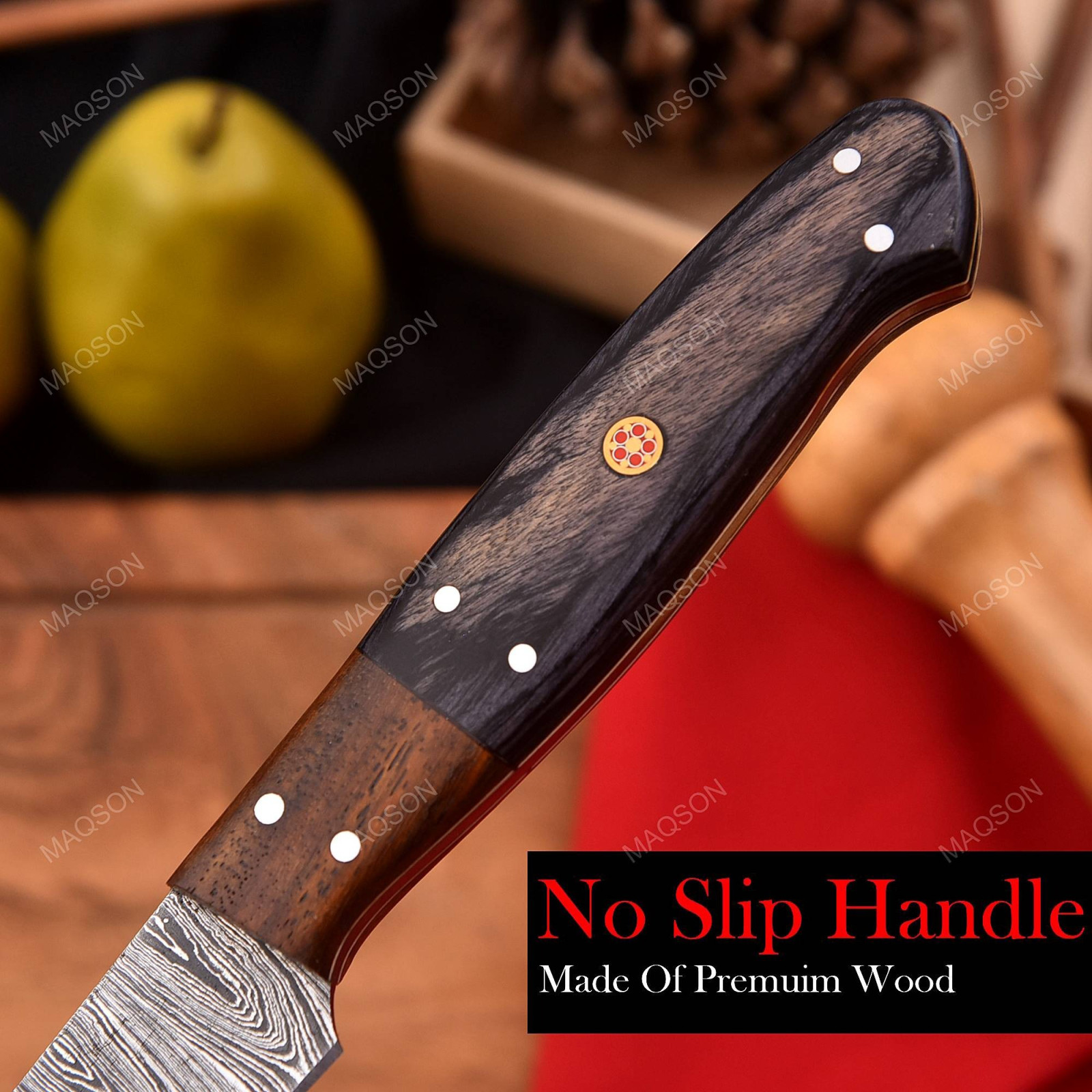 Unser Damaszener wird sehr aufwendig aus zwei verschiedenen Stahlsorten 1095 & 15N20 handgeschmiedet. Durch fünffaches Verdoppeln der Stahllagen und erneutes Schweißen wird die Anzahl der Lagen so vervielfacht. Somit besteht unser Damaszener aus 288 Lagen. Dies zeichnet unsere Messer durch seine lang bleibende Schärfe, Zähigkeit und Härte aus.