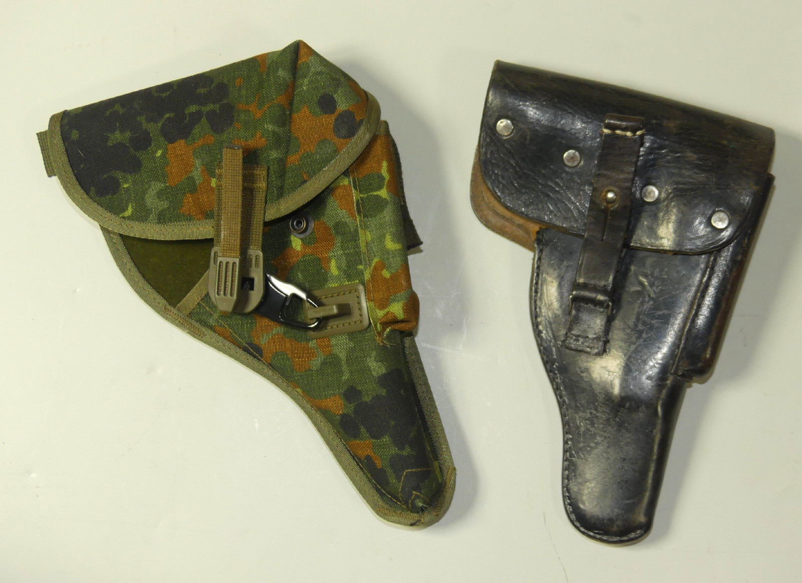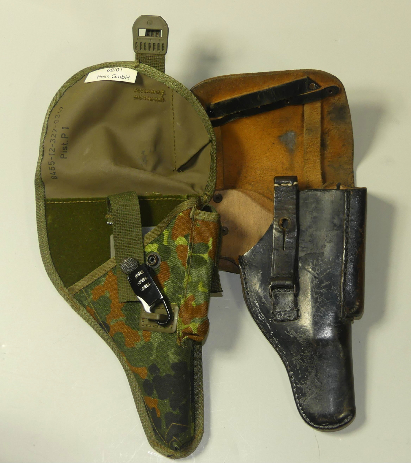 Einmal aus Leder und einmal in Flecktarn. Informationen zu Ihren Verbraucherrechten etc finden Sie unter "Mygun".