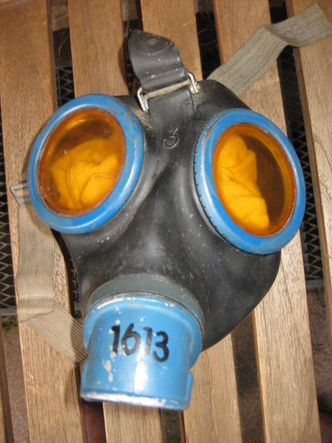 Aus meiner Sammlung gebe ich diese seltenere Gasmaske des Modells 38 in die Auktion. Infolge der lichtblauen Einfärbungen an den Augenringen und dem Mundstück handelt es sich um eine arktisgeeignete Ausführung. Die Originalfarbe ist noch zu 95% erhalten.