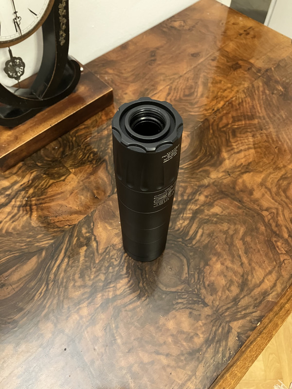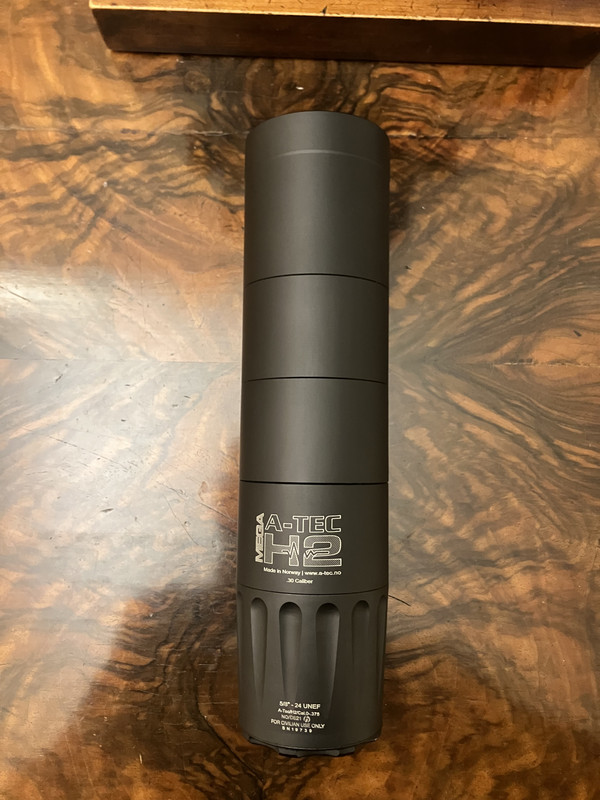 Versteigert wird der abgebildete Schalldämpfer MEGA A-TEC H2 für Kaliber .30 (d.h. .308 Win, .30-06 Springfield, .300 WinMag usw.).