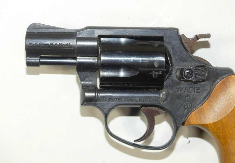 Im Kundenauftrag: Eine richtige Rarität Wadie Revolver P 1, welcher die Pistolenpatrone 9mm PAK verschiesst! Made in Germany. Stahlrommel. Alles in Allem ein Modell, welches äußerst selten angeboten wird! Inkl Abschussbecher und Mündungsblende, welche das Gewinde verdeckt. Informationen zu Ihren Verbraucherrechten etc finden Sie in "Mygun".