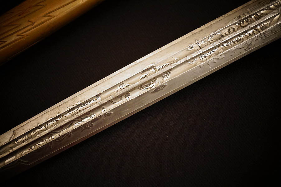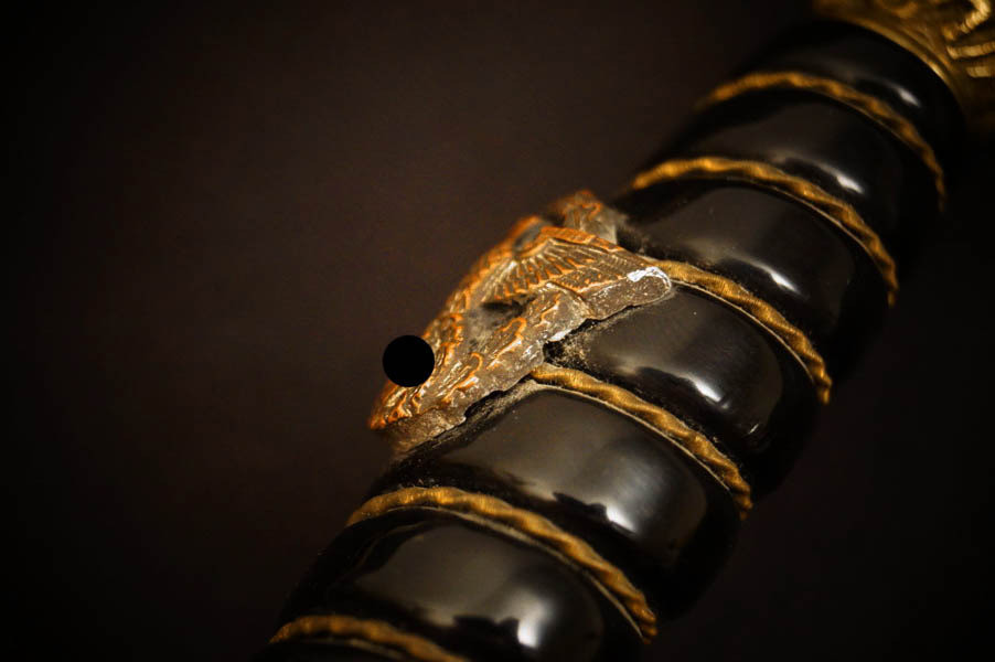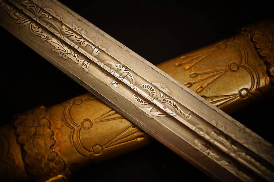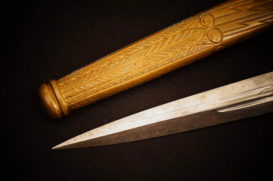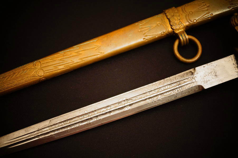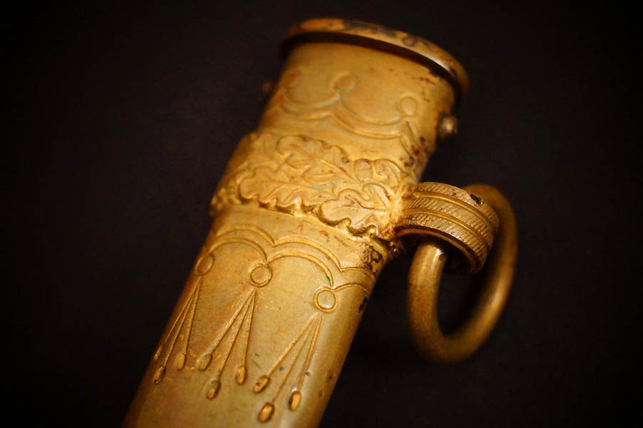 Zustand siehe Bilder. Bilder sind Gegenstand der Beschreibung. Der Dolch ist in allen Teilen matching ! Mehrteilige Bronzescheide, vergoldet. Guter Sitz mit funktionsfähigem Drücker. Klinge geschmiedet und mit Zierätzung. Hersteller Eickhorn geprägt in der Klinge. Griffstück aus Holz/Cellon in schwarz mit feinem Drahtgespinst umwickelt. Flammknauf wie die Parierstange aus Bronze vergoldet. Griffadler aus Cupal geprägt. Schöner getragener Dolch der Wasserschutz Polizei aus dem WK2.
