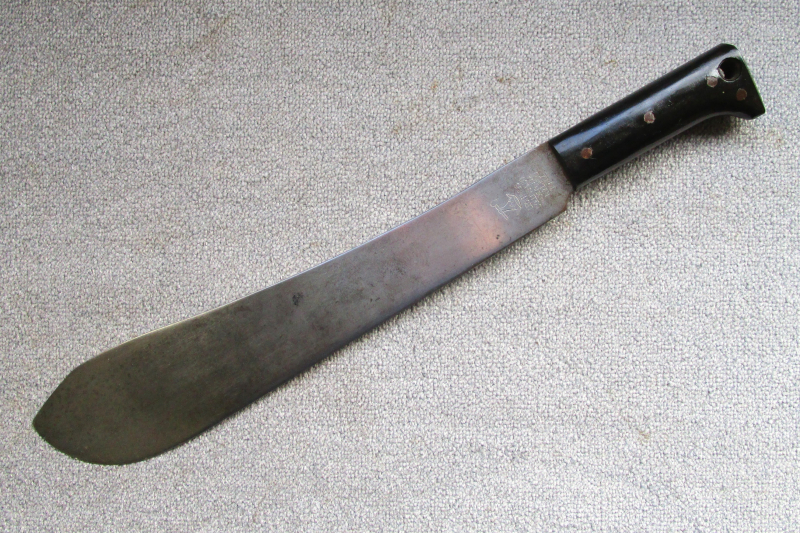 Biete hier diese originale US-Militär Machete ohne Scheide an, hergestellt von der „Legitimus Collins & Co. Company“ im Jahre 1944, robuste Stahlklinge mit vernieteten dunkelbraunen Kunststoff-Griffschalen. Gesamtlänge ca. 50cm, Klingenlänge ca. 38cm. Diese robusten Militär-Macheten wurden bei den verschiedensten Formationen im Zweiten Weltkrieg eingesetzt, und später weiter im Korea und Vietnam Krieg weiter benutzt, sehr guter Originalzustand, siehe auch die Fotos dazu, Fragen gerne per email, Auslandsversand bitte vorher erfragen, allen Bietern viel Erfolg !