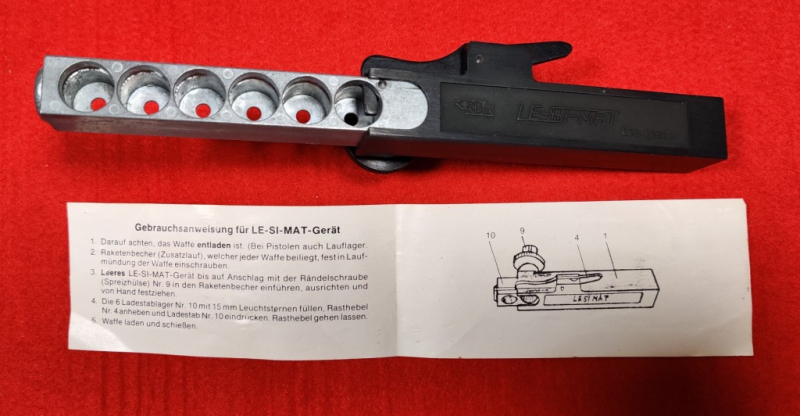 Hier bieten sie auf einen fabrikneuen Mehrfach-Abschußbecher für 15mm Pyrotechnik. Der Abschußbecher wird in die Mündung eingesetzt und mit der Klemmschraube festgeklemmt. Der Abschußbecher ist unbenutzt und ohne Gebrauchsspuren, Gebrauchsanweisung liegt bei – siehe Foto.