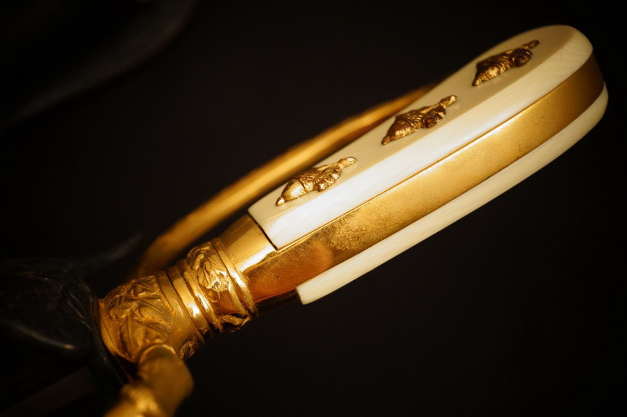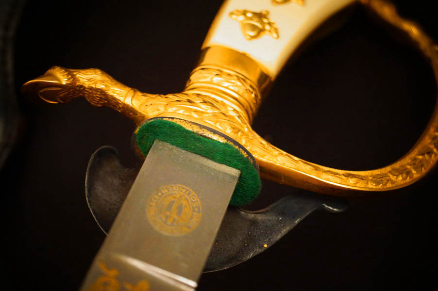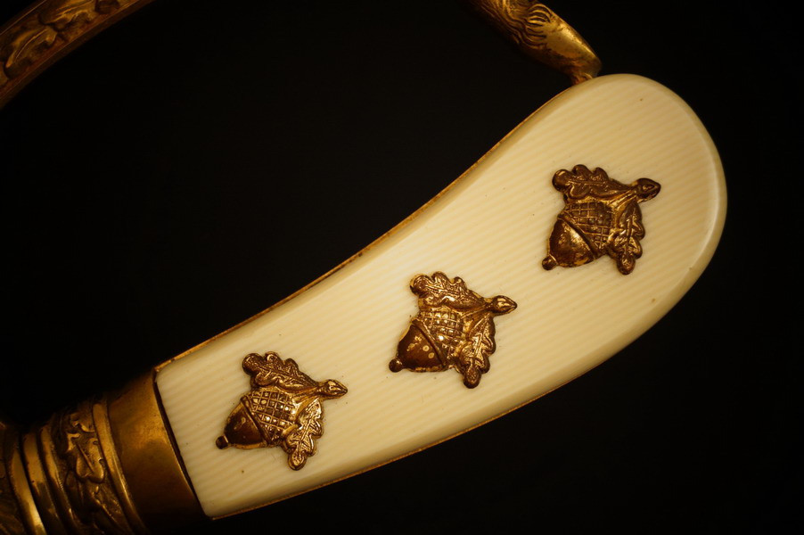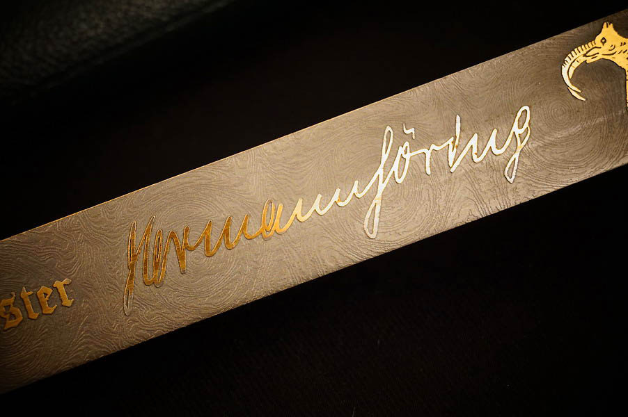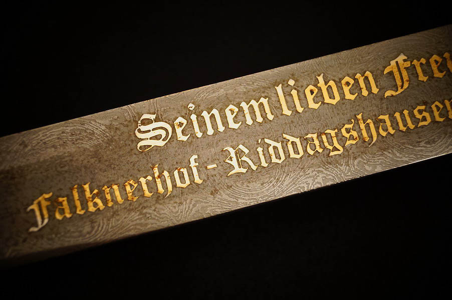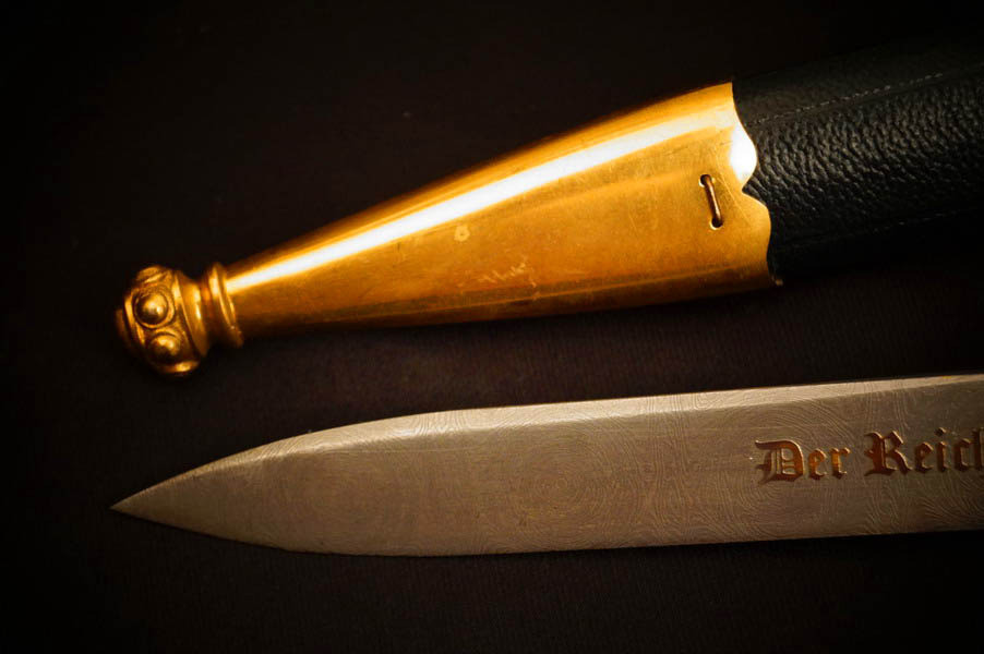 Zustand siehe Bilder. Bilder sind Gegenstand der Beschreibung. Scheide aus günem Leder und mit perfekt vergoldeten Beschlagteilen. Saugender Sitz der Klinge. Klinge aus echtem Damast Stahl - auf dem Klingenrücken auch deutlich erkennbar. Ätzung von Schrift, Hersteller und Deutsche Jägerschaft Abzeichen erhaben und vergoldet. Gefäß aus Bronze wie auch das Stickblatt. Griffschalen aus Cellon mit allen Eicheln dran. Scheinbar war das Stichblatt, welches auch aus Bronze ist, anders vergoldet und es ist in der Zeit stark angelaufen. Das Stück ist matching in allen Teilen. Mit dabei der Koppelschuh der dabei war. Super seltenes Stück !!!