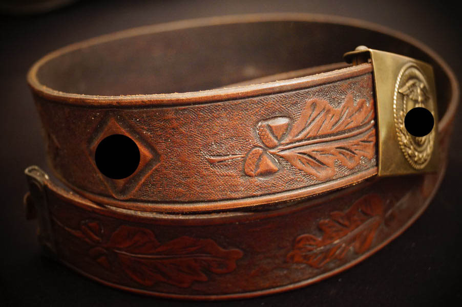 Zustand siehe Bilder. Bilder sind Gegenstand der Beschreibung. So aus einem Nachlass gewesen. Der Träger war in der Partei aber auch Jäger. Altes Leder, getragen und sehr fein von Hand getrieben. Mit dabei das alte Koppelschloss. Der Knopf an der 08 Tasche ist von PRYM. Sehr selten und sicher ein Unikat !!!