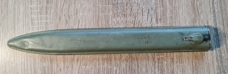 Ich verkaufe eine Stahlblechscheide mit Hersteller ,, FAG" , Länge: 300 mm, von einem Aushilfsseitengewehr.