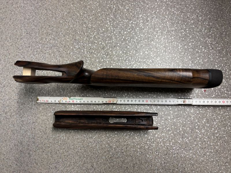 Verkaufe hier ein gebrauchtes Schaftset für die DT11. Ich habe das gebraucht gekauft und selbst 2 Jahre genutzt. Das Holz hat eine schöne Maserung, ist matt und hat 2024 eine schöne neue Schaftkappe vom Büchsenmacher bekommen. Mir ist es etwas zu kurz. Haupteinsatz war Trapschiessen. Rechtsschütze.