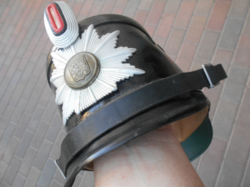 Originaler alter Helm/Tschako, mit Wappen vorn Schleswig-Holstein, wahrscheinlich 1950er Jahre, Alles komplett mit gut erhaltenen originalen Innen-Leben samt Kinnriemen. Grösse 57. Ab sofort schreibt das neue EU-Gesetz vor, nachfolgenden Vermerk aufzuführen: "Ich verkaufe bei meinen Verkäufen ausschließlich Gebrauchtware, sofern nicht anders beschrieben. Diese Artikel sind aus meinem Privatbesitz und ich verfolge mit meinen Verkäufen keinerlei gewerbliche Zwecke. Eine Rechnung gibt es hierfür nicht. Da mittlerweile auch Privatverkäufer ein Jahr Gewähr leisten müssen, wenn sie das nicht ausschließen, erkläre ich hiermit ausdrücklich, dass ich für meine privat verkauften Artikel keine Gewährleistung und keine Rücknahme übernehme. Mit dem Kauf erklären Sie sich ausdrücklich damit einverstanden, auf die Ihnen nach neuem EU-Recht gesetzlich zustehende Gewährleistung/Garantie bei Gebrauchtwaren völlig zu verzichten!"