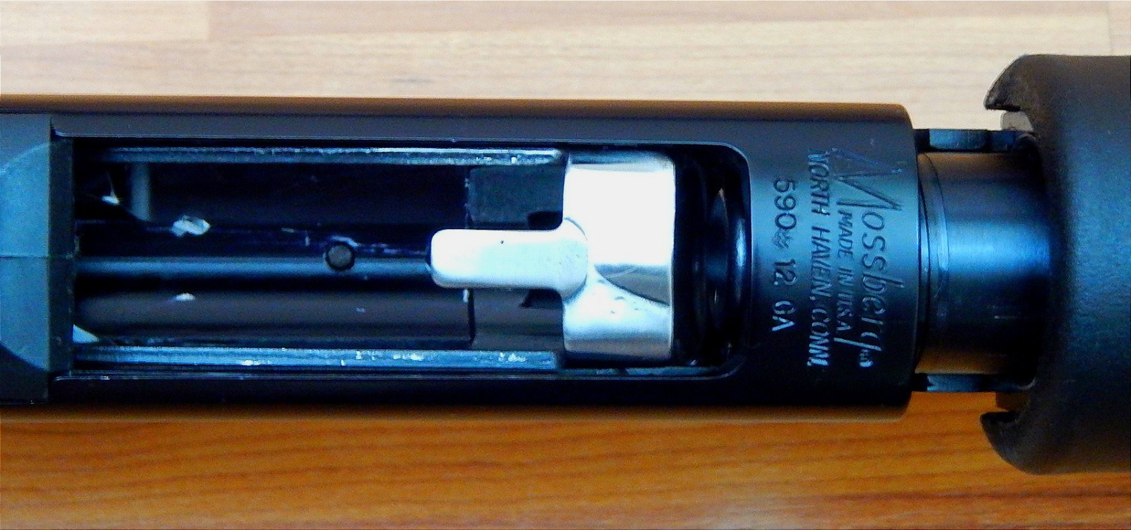 Vorderschaftrepetierflinte Mossberg 590, 12/76 Magnum, Ghost Ring Visier