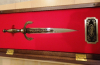 Hier ein wunderschöner Dolch, der sogenannte "Morning Glory Dagger" von Dr. Fred Carter. Dieser Dolch ist identisch mit dem namensgleichen Custom Dagger in einer Ausführung von Gigand. Der neuwertige Dolch kommt zusammen mit dem Wanddisplay, das leichte Altersspuren aufweist.