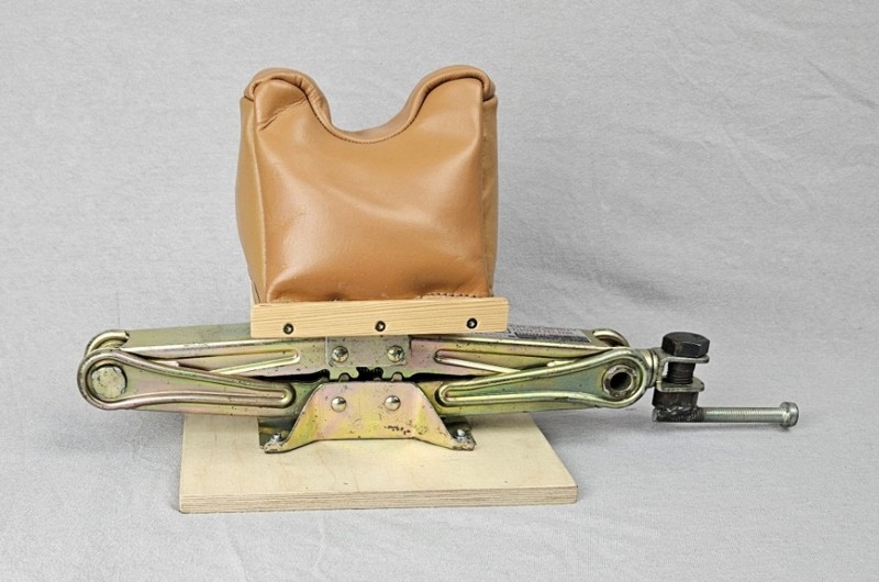 Schießsack aus Leder, mit Sand gefüllt.