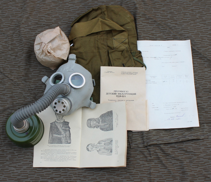 Hallo, sie Bieten hier auf eine Originale russische Kindergasmaske aus der Zeit des kalten Krieges Angeboten wird die Komplette Kindergasmaske mit Tragetasche und Originalem Filter aus unberührtem Arsenalbestand. Auf dem Bild ersichtliches Beschreibungsmaterial und Datenblätter dienen nur der Ansicht sind Dekoration und NICHT Teil der Auktion!!! Die Maske komplett mit Tragetasche ,Filter und die Komplette Kindergasmaske. Kindergasmasken wurden ausgegeben um im Falle eines A B C Angriffes oder bei Havariezuständen in der Zivilverteidigung schützen zu können. Artikel aus Originalem russischen Lagerbestand der Zivilverteidigung ohne versteckte Mängel.